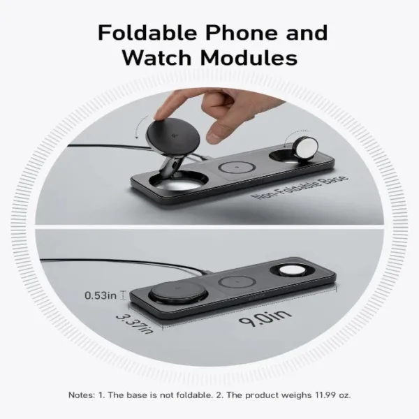 • 3-in-1 Functionality: Charge your iPhone, AirPods, and Apple Watch simultaneously on this foldable charging station.