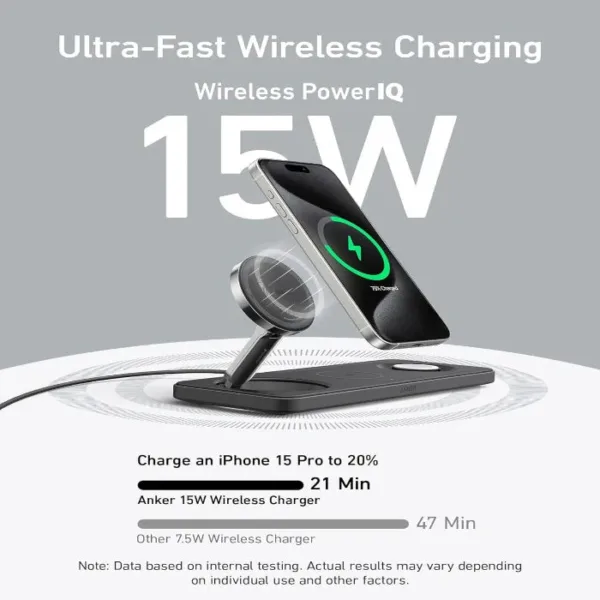 The Anker MagGo Wireless Charging Station (Foldable 3-in-1) is a versatile and compact charging solution designed to keep your devices powered up.