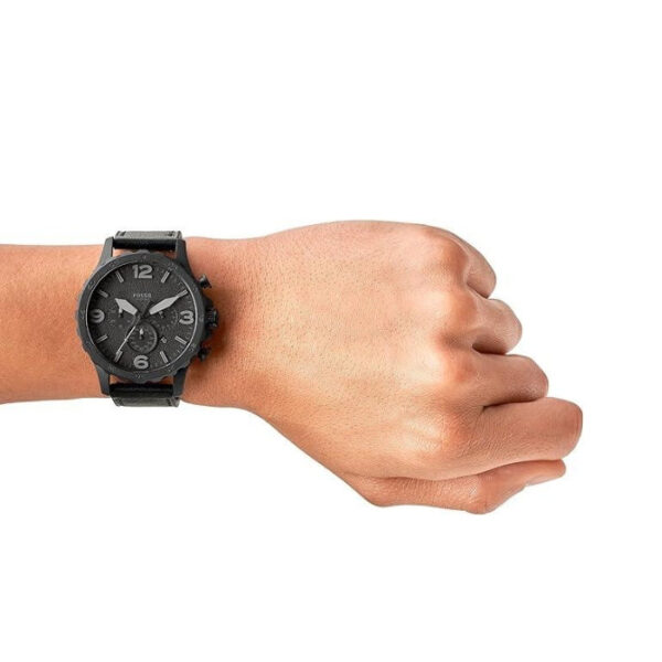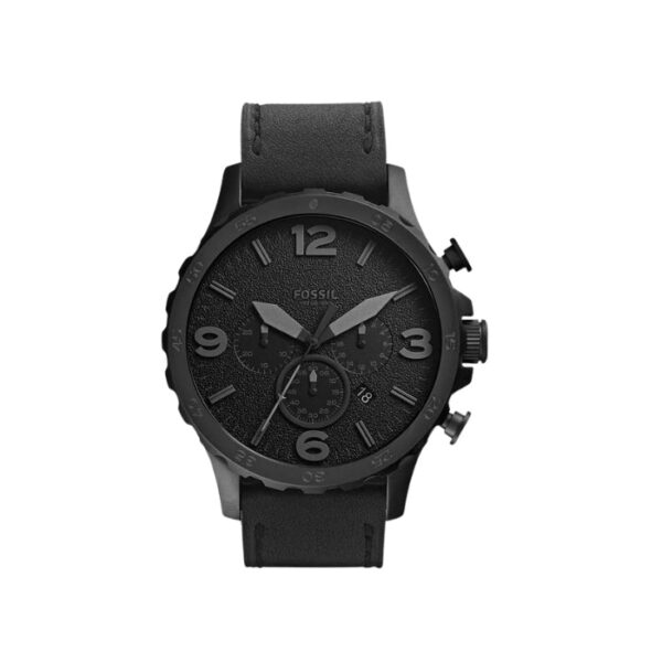 The Fossil Men’s Nate Stainless Steel Quartz Chronograph Watch JR1354 is a stylish and functional timepiece. It features a black round dial with stick and numeral hour markings, a chronograph movement, and a black leather strap.The watch has a 50mm case size and is water resistant up to 10 ATM.